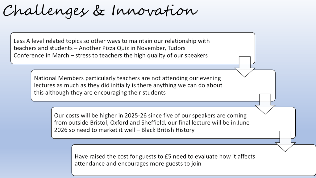 After our Christmas drinks and mince pies a large gathering (98 people) of the Bristol Branch of the Historical Association had a great end to a very successful term of lectures. Andrew Foyle is the author of two volumes of the Pevsner Guide covering the City of Bristol and North Somerset. He is an acknowledged expert on the architecture of the city and has worked on the renovation of many of the city’s distinctive buildings. He presented his personal choices grouping together the Lodge Houses, like Red Lodge, and the timber framed houses many of which still survived. He covered the middling sized Bristol country houses like Stoke House (Stoke Bishop), Langton Court (Brislington), Oldbury Court (Fishponds), Henbury Great House and Old Sneed Park. Many of them were ‘old fashioned’ compared with houses built in London or other parts of England. However, Kings Weston House was a one off. It was built by Sir John Vanbrugh the architect of Castle Howard and Blenheim Palace.