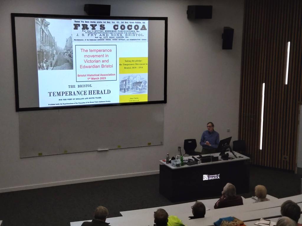 The political side of the temperance movement was fascinating. The Liberals were clearly damaged by their association with the idea of total prohibition. The Temperance Movement also left historians a picture of the drinking habits of Bristolians by counting the number of men, women and children leaving pubs across the city on a single night in 1881. Alan crammed an impressive amount of scholarship into his short lecture but for those wanting to know more there is pamphlet on sale from the ALHA.
